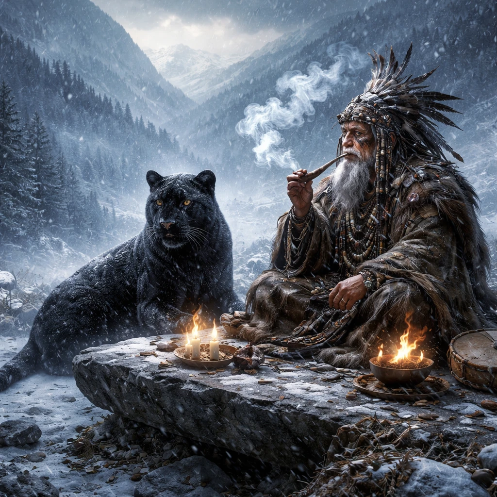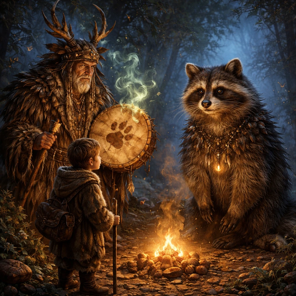 Шаман ударил в свой бубен, на зов сразу же сбежалось все племя, а также слетелась пара местных духов тундры. Люди расселись вокруг шамана, и тот, раскурив свою трубку, начал рассказ: